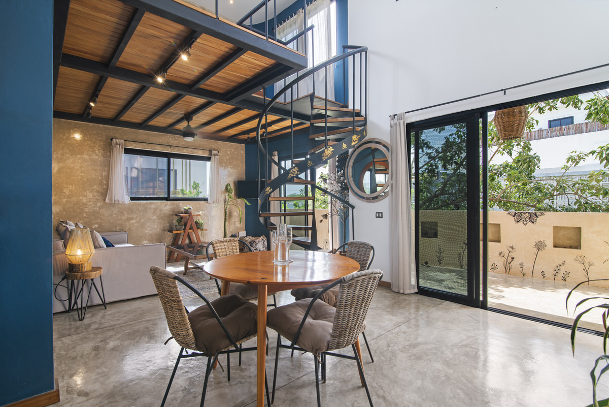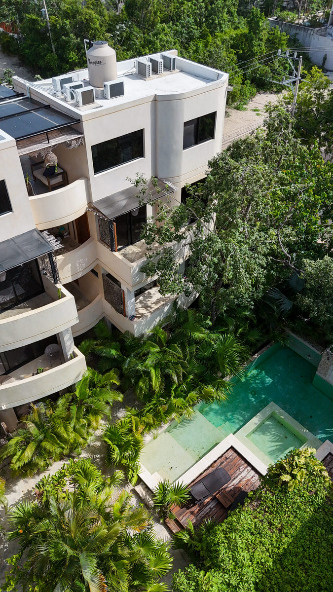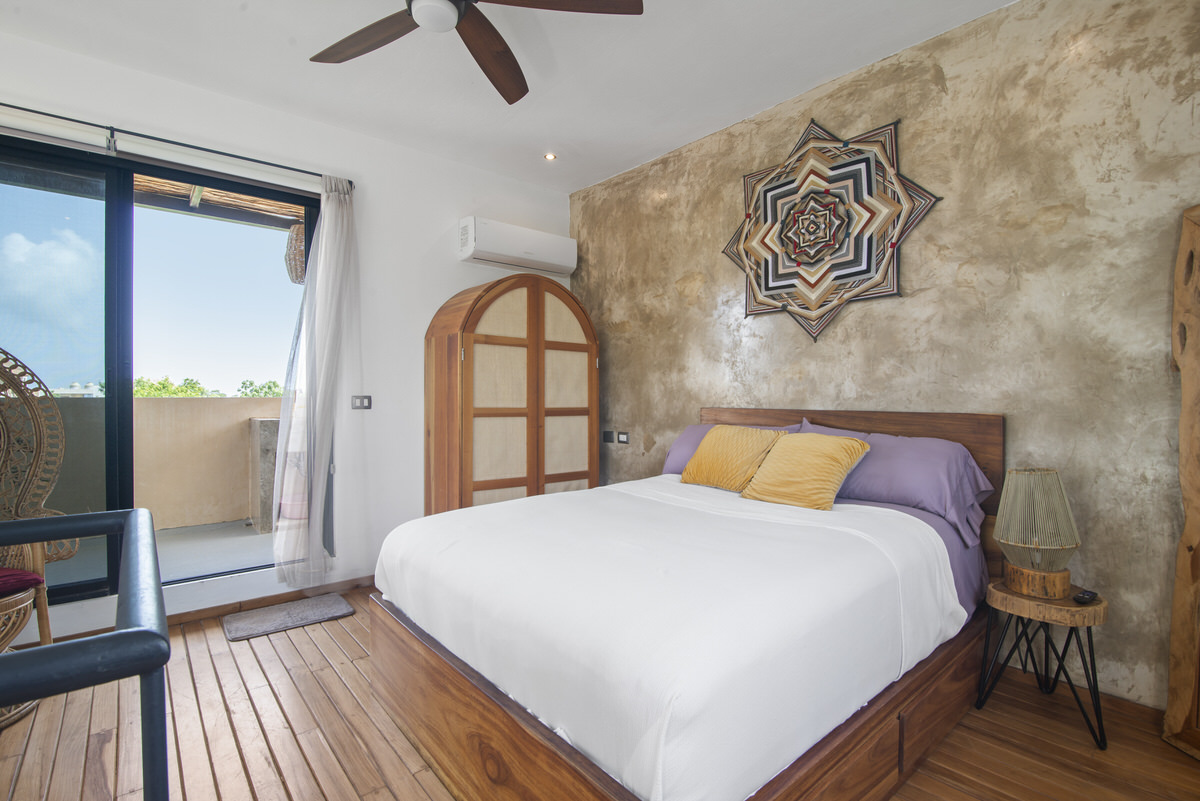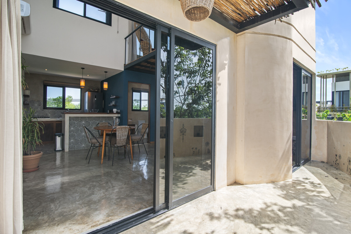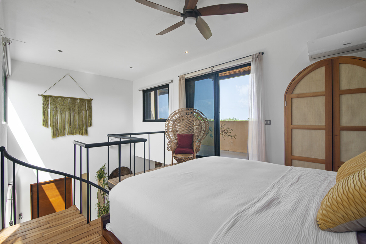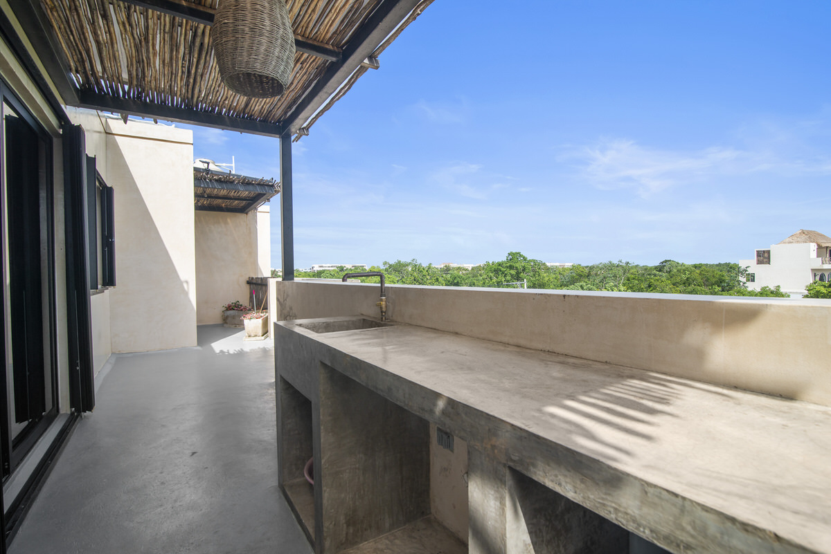 Located in Condo Villa Esperanza, in the highly sought-after La Veleta neighborhood of Tulum, this charming double-height loft penthouse offers a perfect blend of comfort, style, and investment potential. This thoughtfully designed unit features a spacious mezzanine bedroom, creating an open and airy feel enhanced by high ceilings and natural light. The fully equipped gas kitchen and complete bathroom with bathtub-style shower provide everyday functionality with a touch of comfort. Enjoy outdoor living with private balconies and terraces, ideal for relaxing or entertaining. Property Details: 1-bedroom mezzanine penthouse Double-height loft design Fully equipped gas kitchen 1 full bathroom with tub-style shower Private balconies and terraces Covered area: 75 m² Total area: 148 m² HOA fees: $3,200 MXN/month Year built: 2020 Amenities: Swimming pool Social area with palapa Hammock area Strategically located just 100 meters from Av. Kukulkan, offering quick access to the beach and Tulum’s main attractions. Perfect as a full-time residence or a high-demand rental property (short or long term).