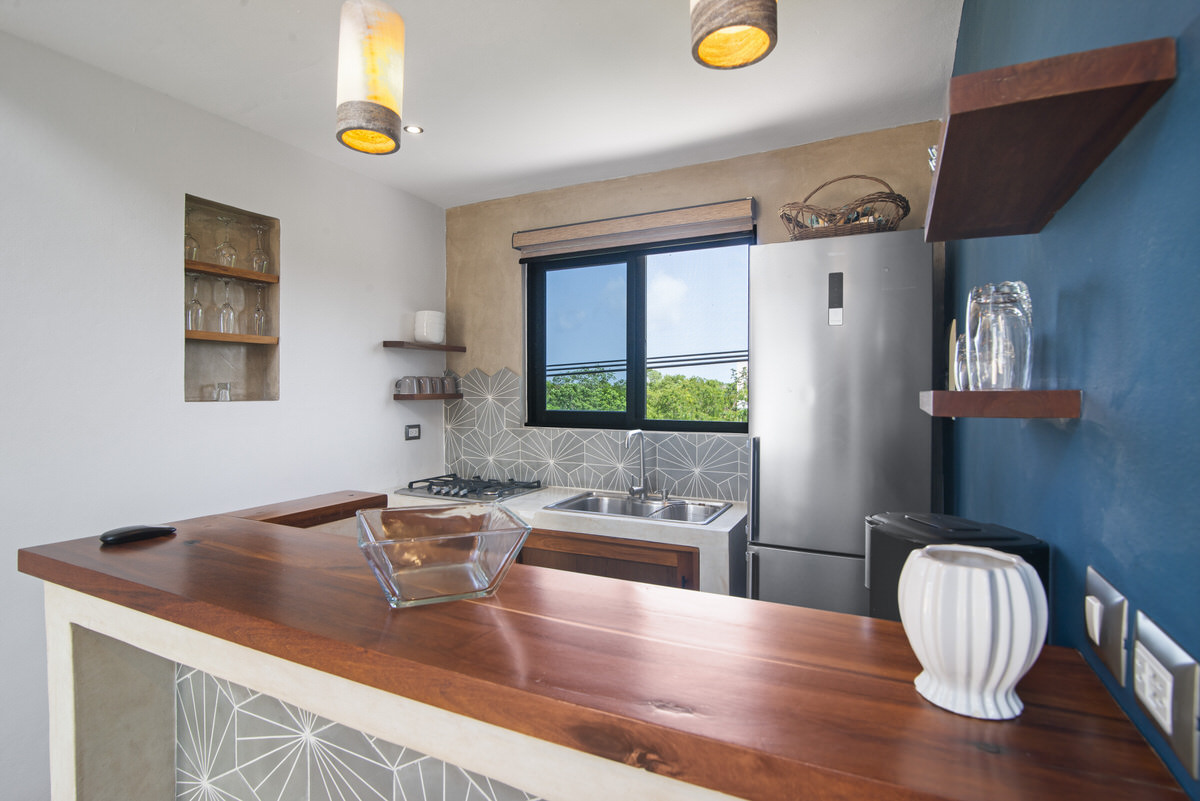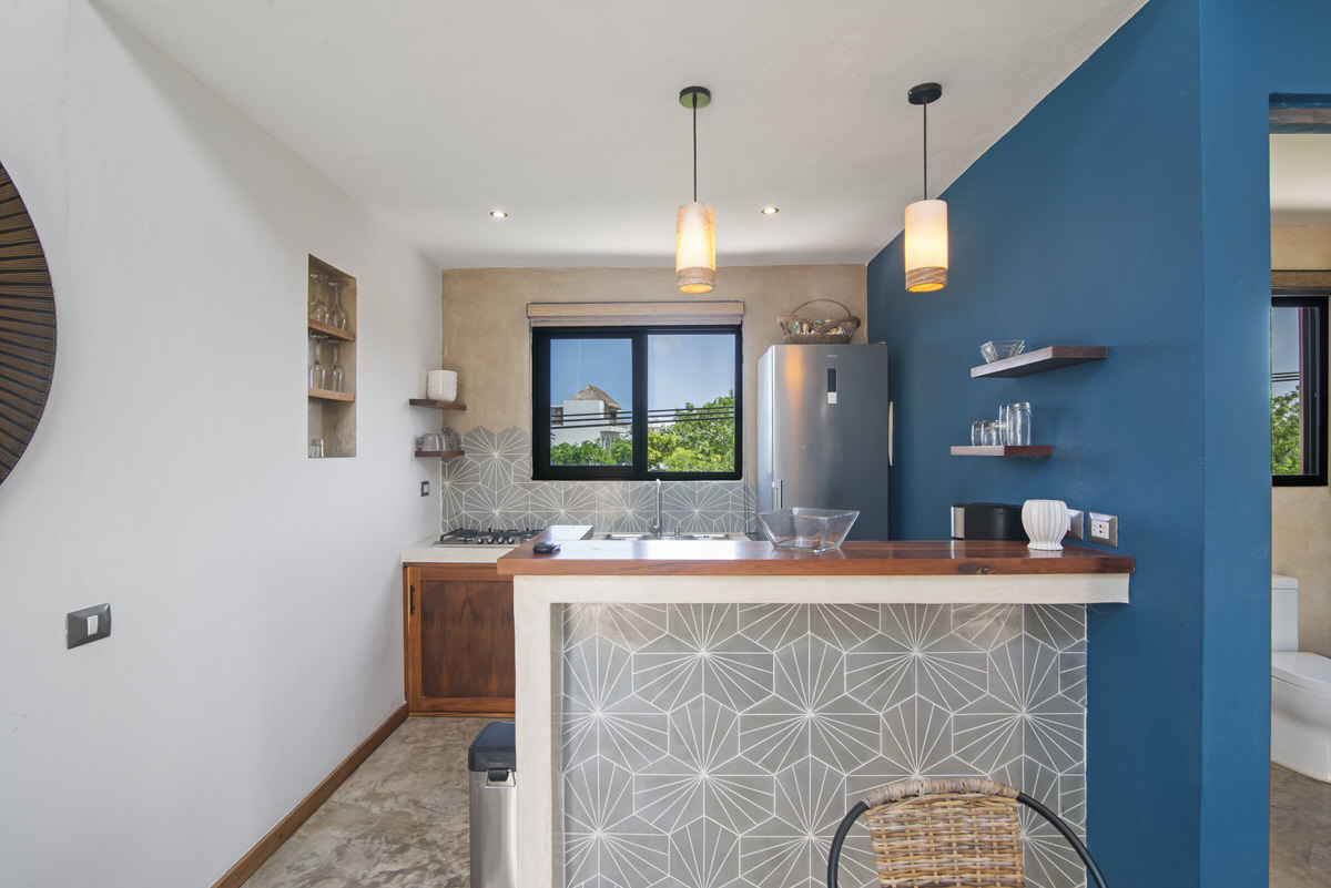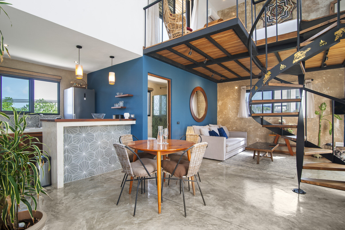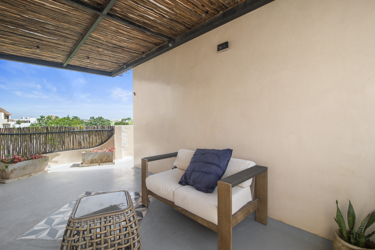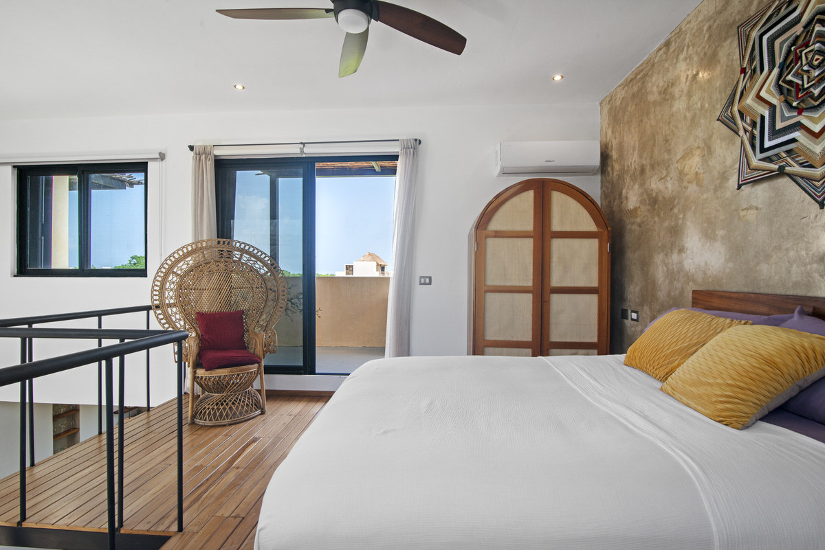 Located in Condo Villa Esperanza, in the highly sought-after La Veleta neighborhood of Tulum, this charming double-height loft penthouse offers a perfect blend of comfort, style, and investment potential. This thoughtfully designed unit features a spacious mezzanine bedroom, creating an open and airy feel enhanced by high ceilings and natural light. The fully equipped gas kitchen and complete bathroom with bathtub-style shower provide everyday functionality with a touch of comfort. Enjoy outdoor living with private balconies and terraces, ideal for relaxing or entertaining. Property Details: 1-bedroom mezzanine penthouse Double-height loft design Fully equipped gas kitchen 1 full bathroom with tub-style shower Private balconies and terraces Covered area: 75 m² Total area: 148 m² HOA fees: $3,200 MXN/month Year built: 2020 Amenities: Swimming pool Social area with palapa Hammock area Strategically located just 100 meters from Av. Kukulkan, offering quick access to the beach and Tulum’s main attractions. Perfect as a full-time residence or a high-demand rental property (short or long term).